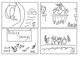 The game starts with a menu featuring the band hanging out, when the game starts the band is about to perform while some devious shadows in the background being the worms and butterflies.