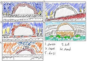 Level 4 is a water level where the player jumps from lily pad to lily pad as a large frog pulls them down and leaves smaller frogs on which have to be hit off. Dragonflies are the flying enemies for this level and will move differently from other flying enemies as they will move in a zig-zag motion.