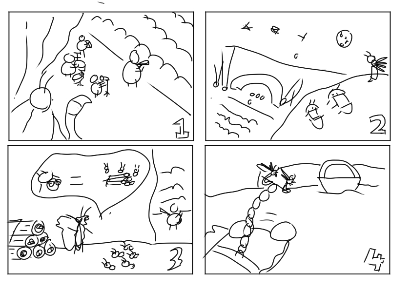 Concept process: This game is based on Space Invaders (1978) style shoot ‘em ups with extra enemies coming in from the sides. The player will be a spider with a guitar fighting off creatures trying to stop their band's perfomence. The concept of a spider playing a guitar came about when I was listening through my interests until I mixed rock music with spider-based characters like Spider-Man ('Amazing Fantasy', 1962). With this I chose to make the setting in the forest but with a modern twist where the bug world is like a smaller human world but made of nature. The cast being primarily made of bugs was inspired by the game Hollow Knight (2017) and would allow for simple designs, the art style would resemble schoolbook sketches which would be easy to draw while also giving a unique and nostalgic style. Earlier levels would have slower moving enemies like worms coming from the sides and butterflies from the top but would later become faster creatures at later levels like birds while introducing hazards on the stage. The idea for combat is to ward off flying enemies with soundwaves from the player's guitar and slam the guitar down on grounded enemies.